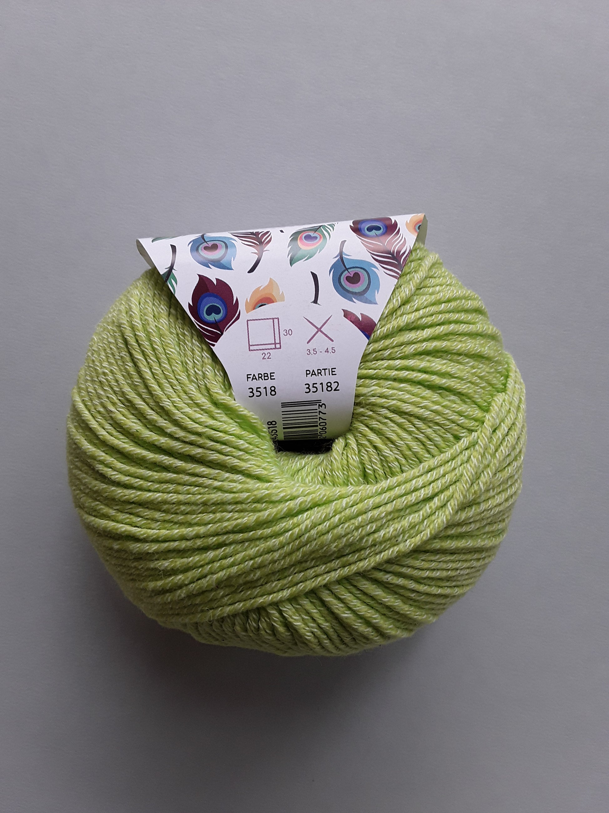 Merino trifft Baumwolle. Dieses Garn eignet sich sehr gut zum herstellen leichter sommerlicher Accessoires. Es besteht aus 55% Merino und 45% Baumwolle.