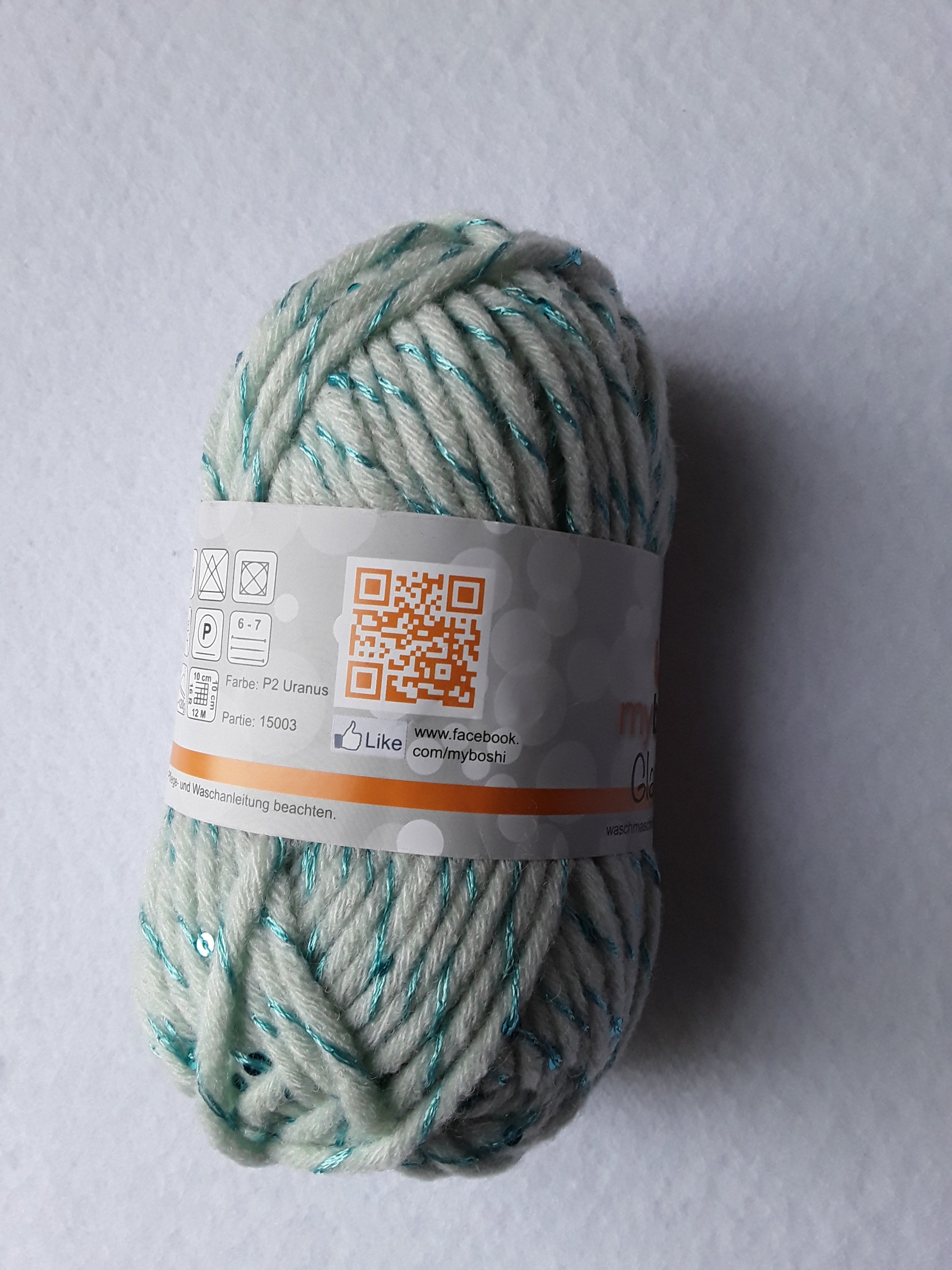 Sie ist ein schillerndes Effektgarn. Es gibt viele Möglichkeiten dieses Garn effektvoll einzusetzen. 58% Polyacryl, 25% Wolle, 17% Polyester.